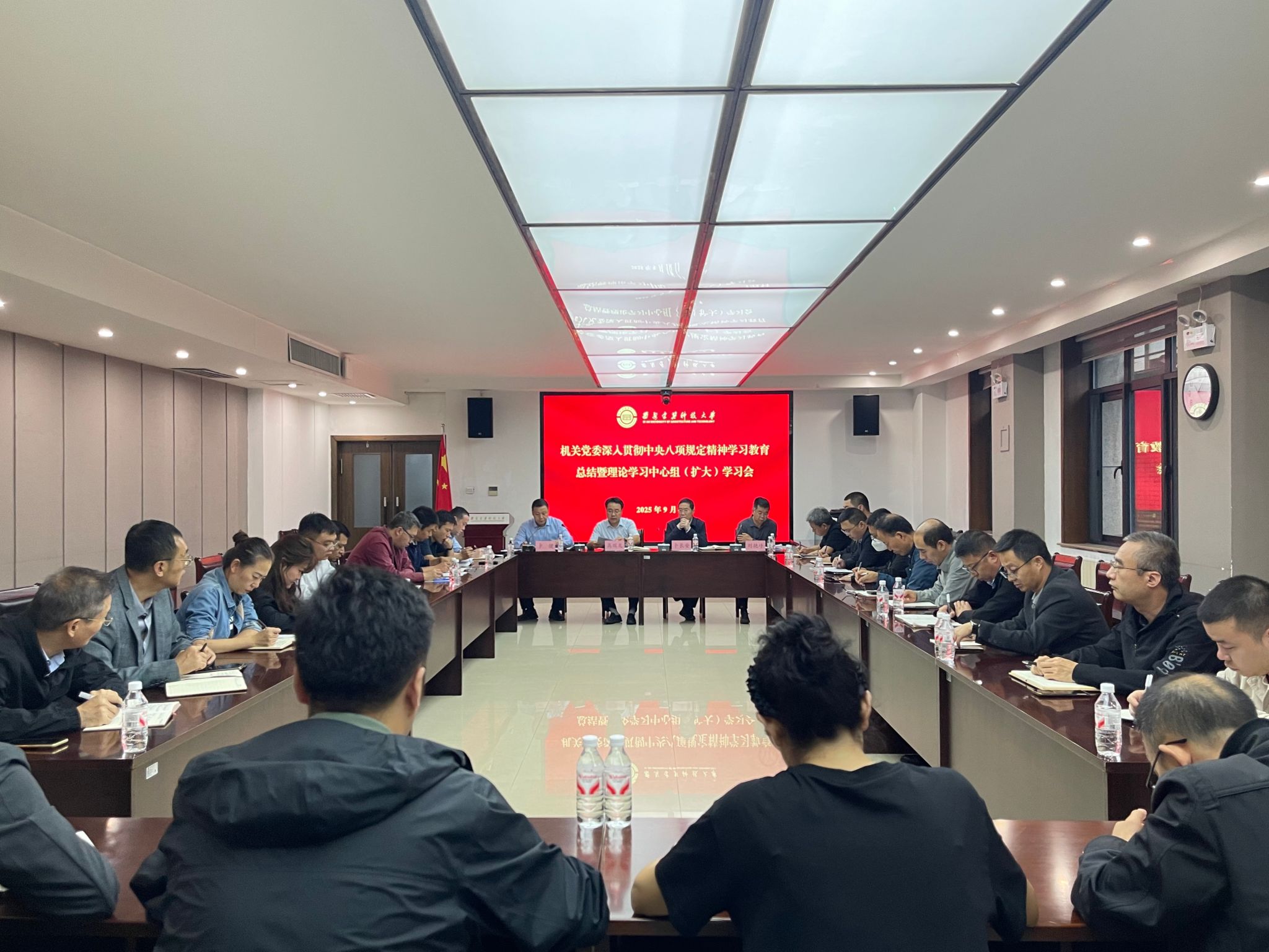 9月18日,机关党委召开深入贯彻中央八项规定精神学习教育总结暨理论学习中心组(扩大)学习会,传达学习习近平总书记关于深入贯彻中央八项规定精神学习教育的重要指示和中央、省委、学校党的建设工作领导小组有关会议精神,总结机关深入贯彻中央八项规定精神学习教育,安排部署巩固拓展学习教育成果、推进机关作风建设常态化长效化工作。机关党委书记高瑞龙同志主持会议。