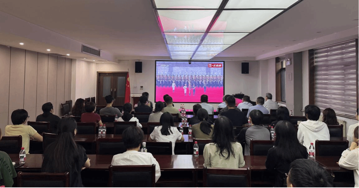 2025年9月3日上午9时,在行政楼负一楼会议室,科学技术研究院党支部联合财务处党支部,组织全体人员集中收看纪念中国人民抗日战争暨世界反法西斯战争胜利80周年大会。
