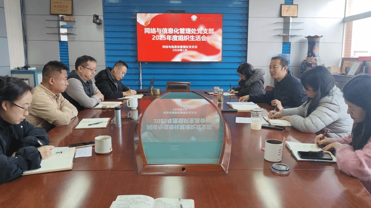 根据学校党委及机关党委统一部署,近期,网络与信息化管理处党支部在逸夫楼709会议室召开2025年度组织生活会,支部全体党员参加会议。会议由网信处党支部书记张龙主持。会议主题紧密结合学校“双一流”建设和“十五五”智慧校园建设发展规划,扎实开展对照检查、批评与自我批评,切实把思想和行动统一到学校高质量发展部署上来。